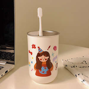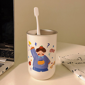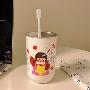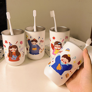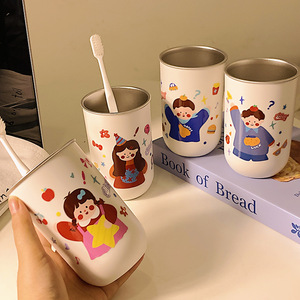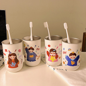 304 ステンレス鋼のマウスウォッシュカップ、親子 4 人で歯を磨く、かわいいカップル、家庭用子供用歯ブラシ、厚みのある