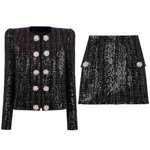 高品質既製2025春と秋の新しいファッションヘビースパンコールとダイヤモンドがちりばめられた多用途の女性用ジャケットトップ+スカート