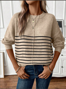 欧米風ゆったりニットセーター 春夏新作 クラシックセーター 万能トップス 薄手 高品質 レディース フリーサイズ ストライプ ラウンドネック