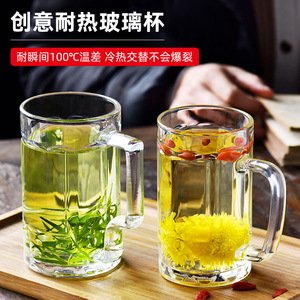 带把手玻璃杯家用杯子水杯套装啤酒杯扎啤喝水泡茶大容量带把茶杯
