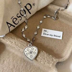 インニッチレトロ古いピーチハートフラワーネックレスクールガールラブペンダント多用途チタン鋼鎖骨チェーンネックレス
