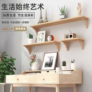 实木墙上置物架上墙免打孔客厅卧室零食隔板架收纳展示架电视背景