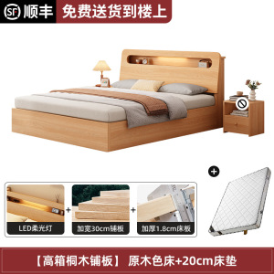 【高箱桐木铺板】原木色床+20cm床垫【免费上楼】
