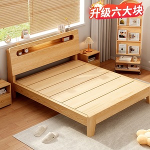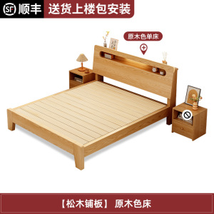 【松木铺板】原木色床+床头柜*1【免费上楼】