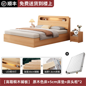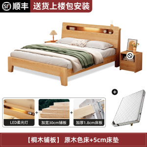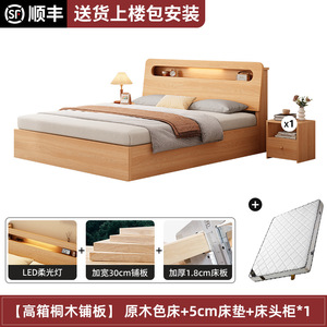 【高箱桐木铺板】原木色床+5cm床垫+床头柜*1【免费上楼】