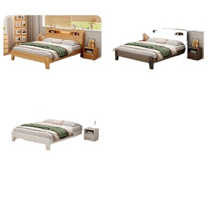 【高箱桐木铺板】原木色床+床头柜*2【免费上楼】