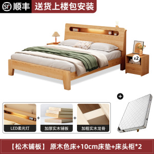 【松木铺板】原木色床+10cm床垫+床头柜*2【免费上楼+安装】