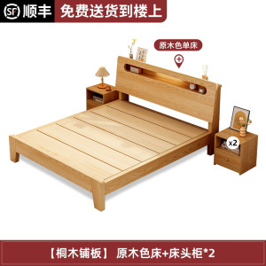 【桐木铺板】原木色床+床头柜*1【免费上楼+安装】