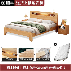 【桐木铺板】原木色床+20cm床垫+床头柜*1【免费上楼】