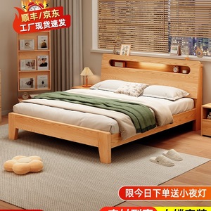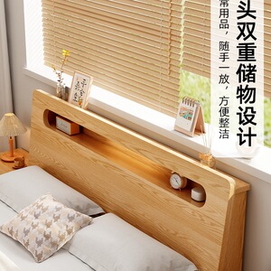 实木床简约现代加厚1米8双人床主卧1米5的出租房家用1米2单人床架