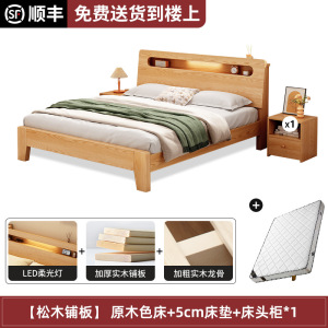 【松木铺板】原木色床+20cm床垫+床头柜*1【免费上楼】