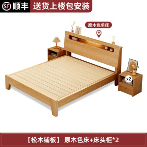 【松木铺板】原木色床+床头柜*2【免费上楼+安装】