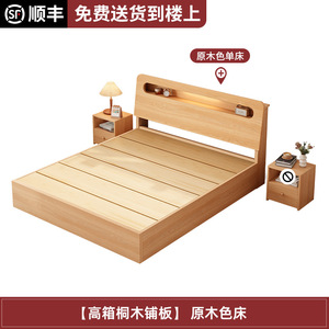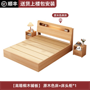 【高箱桐木铺板】原木色床+床头柜*1【免费上楼】