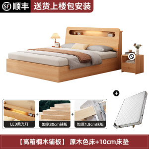 【高箱桐木铺板】原木色床+10cm床垫【免费上楼】