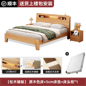【松木铺板】原木色床+5cm床垫+床头柜*1【免费上楼】