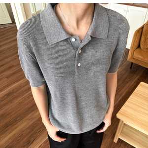 EME メンズ ニューラッチ 高級夏ニット綿麻糸オールドマネー リラックス通気性ポロ半袖セーター