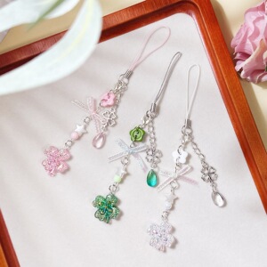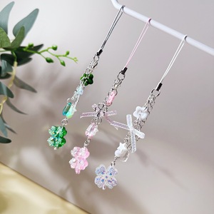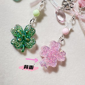 跨境新款少女心砂糖钻四叶草手机挂件钥匙扣挂件手工串珠挂饰包挂