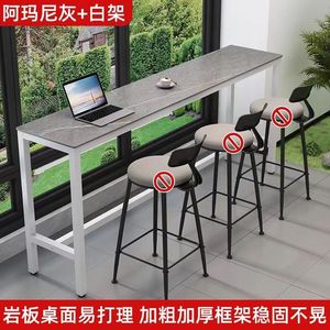 壁に貼り付けられたスレートバーテーブル、窓に沿った長いテーブル、バーテーブル、長い狭いテーブル、背の高いテーブル、バルコニーレジャーバーテーブル
