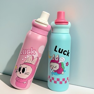 見栄えの良い魔法瓶カップ、かわいいストローカップ、316ステンレス鋼の学生漫画、大容量、落下防止、ポータブルダブルドリンクカップ