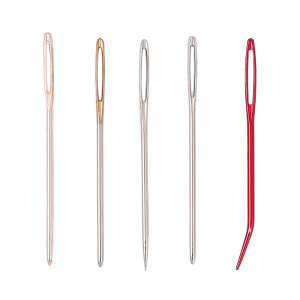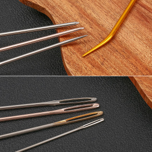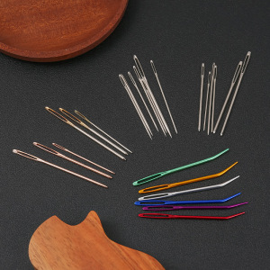 カラー酸化アルミニウムエルボ針、大きな目の手縫い針、縫製ツール、ミシン針、クロスステッチ金メッキヘッド刺繍針