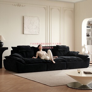 佛山帆船沙发超宽坐深2025新款布艺可调节靠背黑色云朵雪尼尔沙发