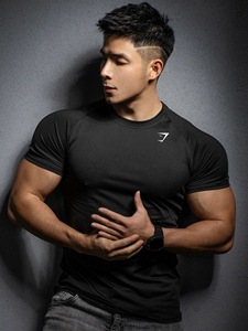 GYMSHARK フィットネス半袖 2025 新しい対外貿易筋肉スポーツタイト Tシャツプリント弾性速乾 Tシャツ