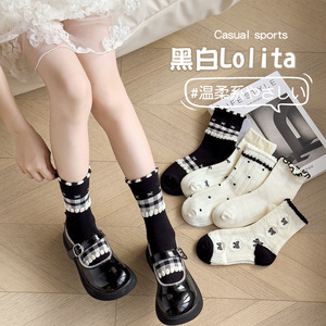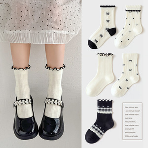 夏子供靴下ロリータリボン女の子靴下韓国風ミッドカーフソックススウィートプリンセス学生トレンディソックス春と秋
