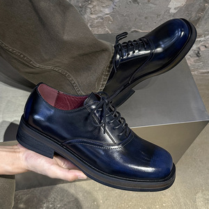 英伦风德比鞋男厚底增高休闲方头商务通勤鞋12563蓝色 银色-J
