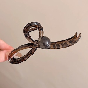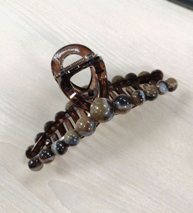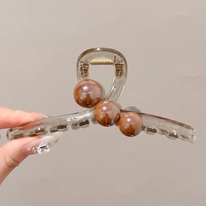 1#大きめ透明グレー下クリップ【ライトコーヒーパール】13cm