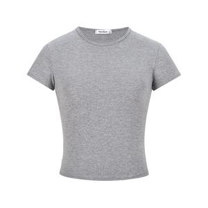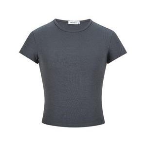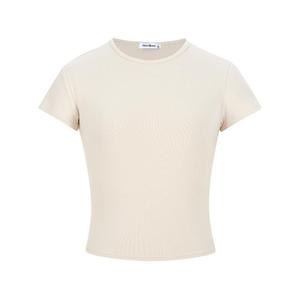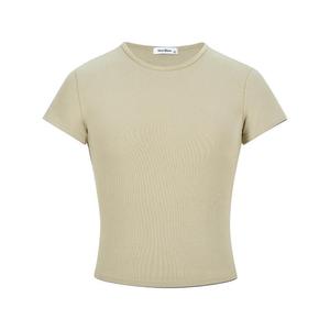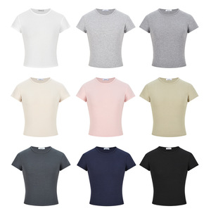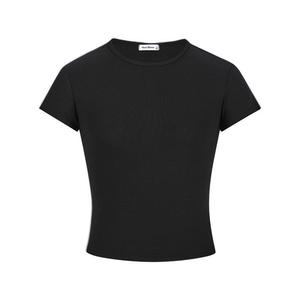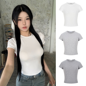 ソリッドカラーのピンチウエスト痩身ラウンドネック半袖シャツホットガールピュアデューショートトップホワイトブラックピンク