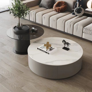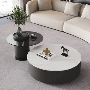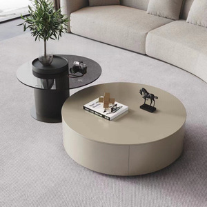イタリアのミニマリスト無垢材ラウンドコーヒーテーブル、軽くて豪華な小さなアパートメントティーテーブル、インターネットセレブのシンプルでモダンなテレビキャビネットの組み合わせ