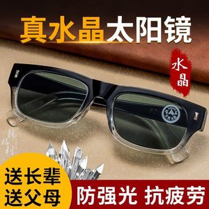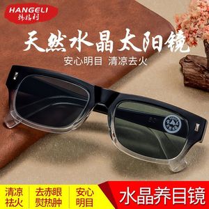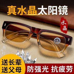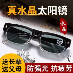 本物の天然水晶ストーンサングラスメガネメンズラージフレーム遮光メガネドライバー運転サングラス目の保護