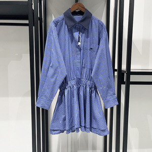 フレンチニッチ2025初秋INSファッションキラキラホットダイヤモンドチェック柄POLOカラーシャツウエストドレス25548