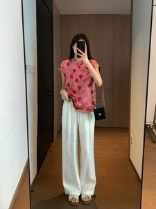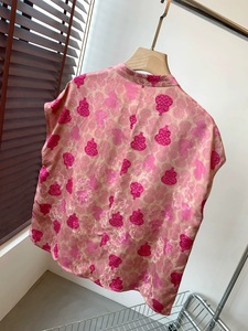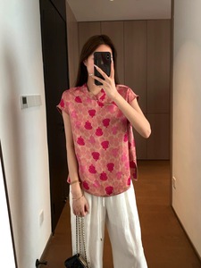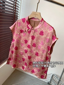 THEWOW Fulu 新中国風レーヨン香りの雲糸滑らかで繊細な両面プリントスタンドカラーベベルスリーブトップ