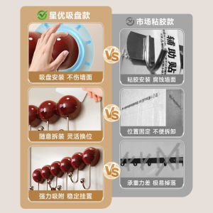吸盤列フック、パンチなし、強力な耐荷重、バスルーム、寝室、ドアの後ろの洋服ラック、キッチン粘着フック、帽子収納