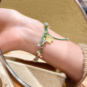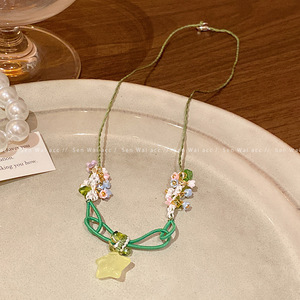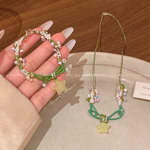 フォレストグリーンスターブレスレットネックレスセット、新鮮でファッショナブルで多用途な小さな花の鎖骨チェーン、韓国の新しいアクセサリー