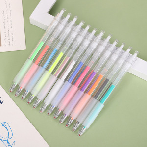 12色3D立体果冻笔学生彩色手账笔糖果色绘画笔创意按动果汁笔批发