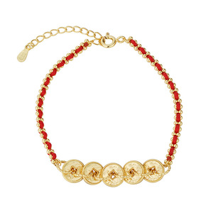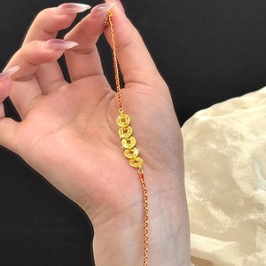 新しい中国風の砕いた氷五帝マネー赤いロープ編組ブレスレット女性の絶妙な多用途ハンドロープライト高級レトロスタイルハンドジュエリー