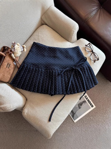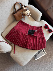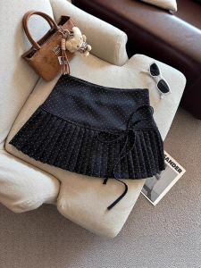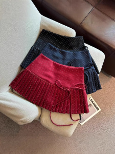 学院风波点百褶半身裙女蝴蝶结系带a字裙小个子圣诞节红色裙子春