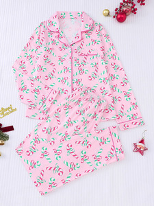国境を越えた貿易卸売レディースパジャマ四季クリスマスプリントラペル長袖ズボンヨーロッパとアメリカのカーディガンパジャマ