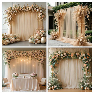 跨境代发纱幔布幔穿杆户外婚礼派对现场布置装饰背景婚庆拱门网纱