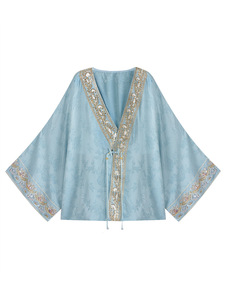 [Jin Zhaoyu Cui] 新しい中国風レーヨンジャカード重工業ビーズ刺繍クロスブレストジャケット女性の国民風ルーズジャカードブラウス