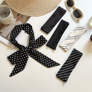 クラシックな水玉模様のリボン、レトロなスタイル、フレンチドット、細くて狭い多目的リボン、長い小さなシルクスカーフ、ヘアバンド、ヘアタイ