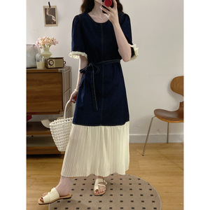 ファットMMデザイン、ライトで大人なスタイル、薄いデニム、スリム、新しいプリーツフィッシュテールステッチ、気質カバーアップドレス