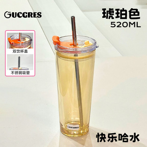 琥珀+蓋+ステンレスストロー+シリコンカバー+黄色の持ち運びロープ