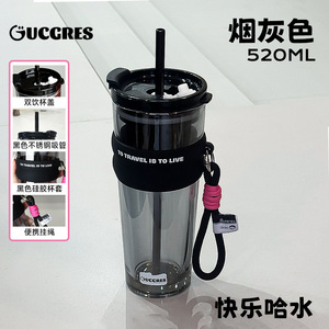 スモークグレー + 蓋 + 黒ステンレスストロー + シリコンカバー + ローズレッドキャリーロープ