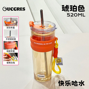 ピーチハートドゥビ+蓋+プラスチックストロー+シリコンカバー
