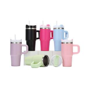 クロスボーダー 14 オンスハンドル車カップ 304 ステンレス鋼断熱カップポータブル車冷却ストローアイスカップ卸売