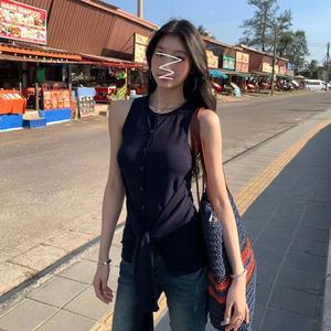 アメリカンホットガールノースリーブキャミソールレディース春夏スリムフィットデザインニッチストラップボトムシックトップ
