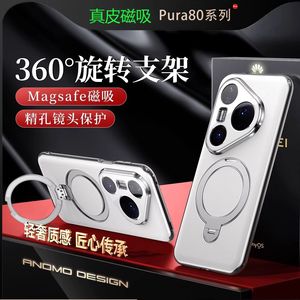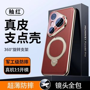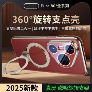 适用华为pura80pro+手机壳真皮磁吸pura80Ultra旋转指环支架p80套
